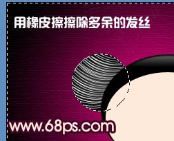 8、按住ctrl鍵的同時單擊左邊頭發圖層的圖層縮覽圖,載入左邊頭發圖層的選區。再按ctrl+shift+i鍵將選區反選,然后使用橡皮擦工具將多余的頭發絲擦掉。按ctrl+d取消選區.更改填充度為17%。