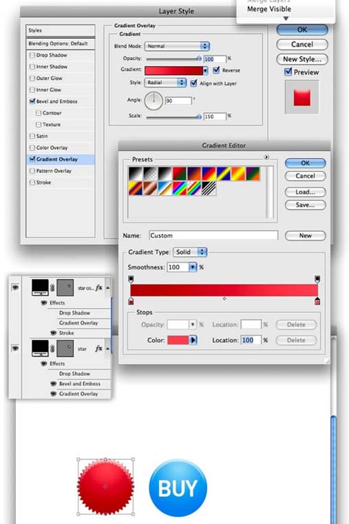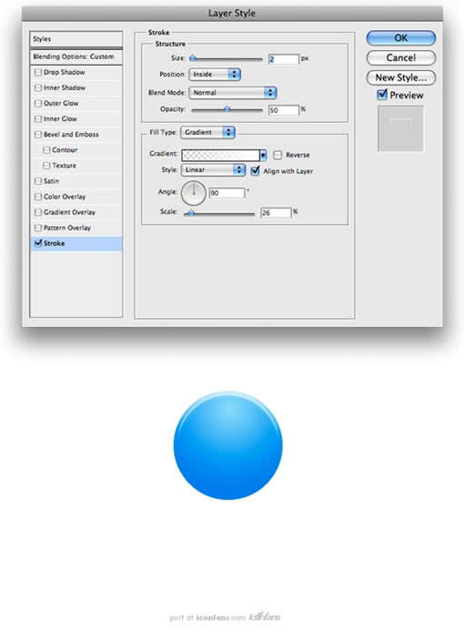 小竅門:將漸變疊加移動到圓形頂端:打開圖層樣式窗口,選中“漸變疊加”選項。按住按鈕調整漸變。