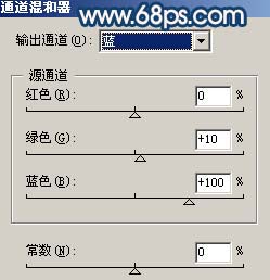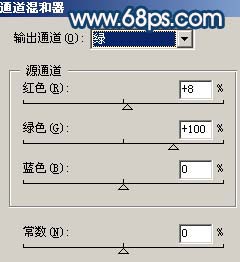 7、創建通道混合器調整圖層,對綠色及藍色通道進行調整,參數設置如圖16,17,效果如圖18。