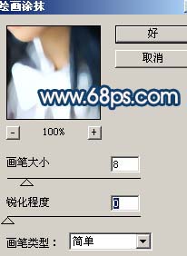 9、新建一個圖層,蓋印圖層,執行:濾鏡 > 藝術效果 > 繪畫涂抹,參數設置如圖20,確定后加上圖層蒙版用黑色畫筆把人物部分擦出來,效果如圖21。