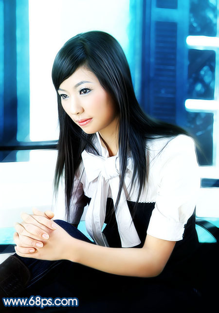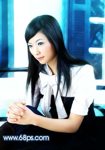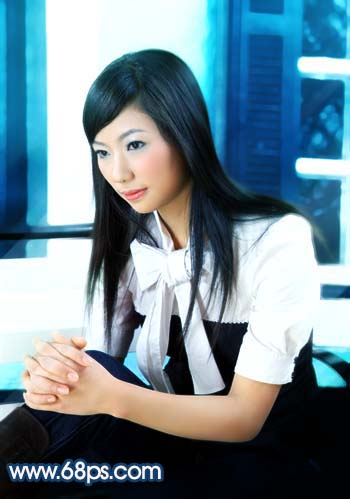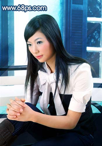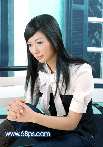 本教程的素材圖為室內拍攝的照片,光效比較柔和,人物膚色的質感不是很好,背景也比較昏暗。調色的時候可以根據需要適當把人物及背景處理一下。顏色可以調成自己喜好的顏色。