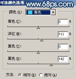 4、創建可選顏色調整圖層,對青色進行調整,參數設置如圖10,效果如圖11。
