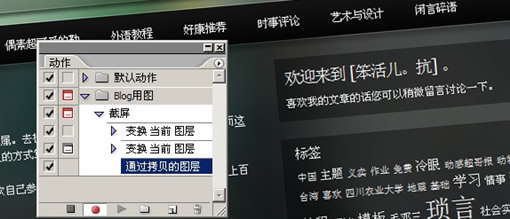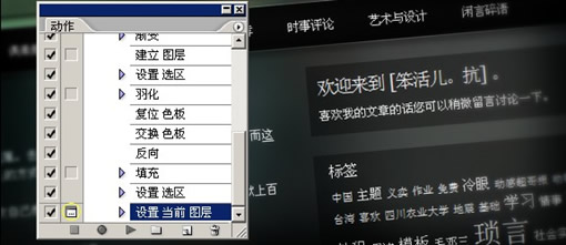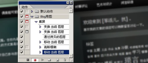 “動(dòng)作”功能的原理是記錄下你的一系列操作,今后遇到同樣的效果要求時(shí),可以“播放”動(dòng)作,讓photoshop自動(dòng)幫你完成這一系列類似的操作。 在smashing magazine 上有很多免費(fèi)的動(dòng)作腳本供你下載使用: the ultimate collection of useful photoshop actions(英文)。