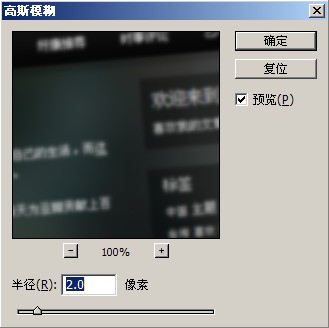 現(xiàn)在設(shè)置模糊效果。濾鏡->模糊->高斯模糊,我這里半徑為2像素。