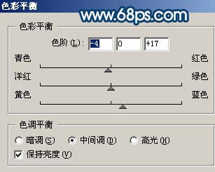13、創建色彩平衡調整圖層,參數設置如圖21,效果如圖22。