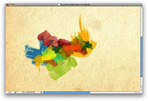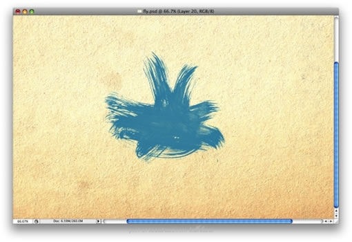 現(xiàn)在讓我們開始使用筆刷工具,在這個例子中,我使用的筆刷是“the fantastic bitbox set of watercolor brushes”,如果你還沒有這個筆刷,可以去下載(下載地址),這個系列的筆刷還有幾個其他的奇特樣式,你可以嘗試不同的效果,選擇一種進行創(chuàng)作,前景色為藍色,新建一個圖層,在這個圖層上面一次性的畫上圖案,大至像下圖所示。本文由網(wǎng)頁設計webjx.com整理發(fā)布!轉(zhuǎn)載請注明出處,謝謝!
