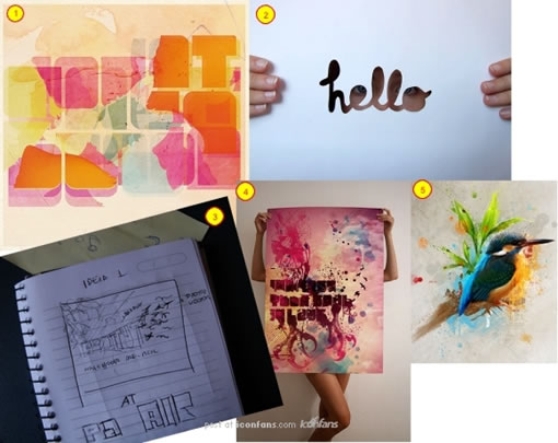 我的整個創(chuàng)作的第一步,是根據(jù)我的創(chuàng)作大意尋找了許多相關的圖片素材,同時我開始對我的創(chuàng)作過程進行規(guī)劃。這樣我便在收集圖片的時候就開始定下我的設計路思路與方向。當然,我可以在創(chuàng)作的時候改變我的思路,所以我收集了許多效果的圖片,都是我喜歡的以及在此次設計中會應用到的(下圖中的1/2/4/5),緊接著我便把我的想法畫在了紙下(下圖的3),并融入了我的設計思路,同時也形成了我的一個設計理念。