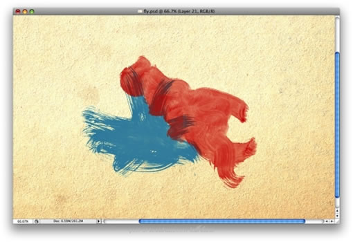 新建一個圖層,選用紅色,像上一個步驟那樣操作。同時你還可以嘗試著用不同的圖層疊加開式,在這里我使用的是正常模式。