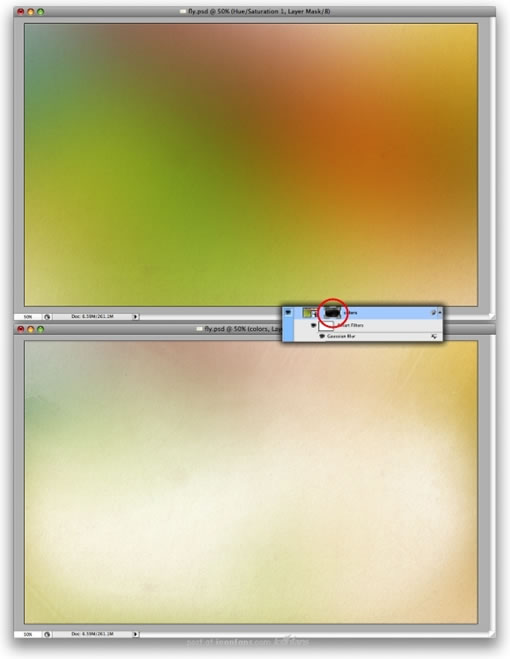 把文字圖層,鳥類圖案的圖層,以及你上一步驟中涂抹的圖層和一些其他細節(jié)相關的圖層都合并掉得到一個新圖層,然后在圖層面板中,按住ctrl鍵,再擊這個新圖層,便會選中這個新圖層的區(qū)域,然后再切換到“watercolor”的圖層,進行這樣的操作:圖層-添加圖層蒙板-顯示選區(qū)。