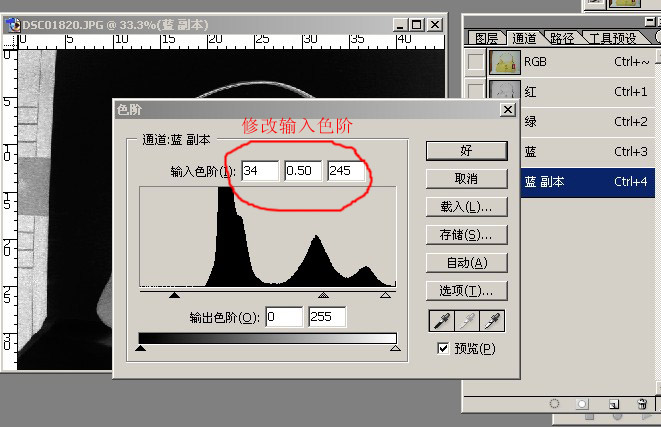 第四:按住ctrl+l,得到以下對話框,修改輸入色階