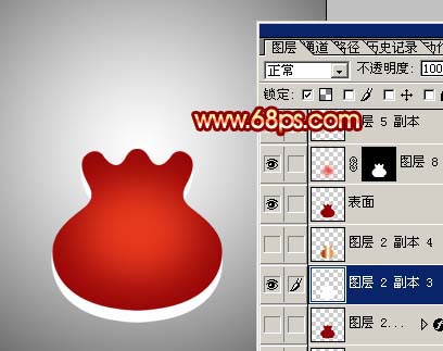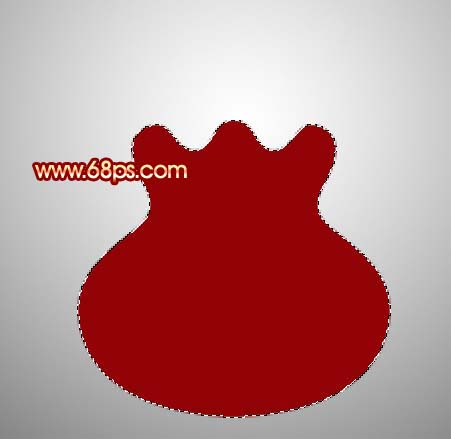 2、新建一個圖層,命名為“表面”,用鋼筆工具勾出圖2所示的路徑,轉(zhuǎn)為選區(qū)后填充深紅色:#9b0908,效果如圖2。