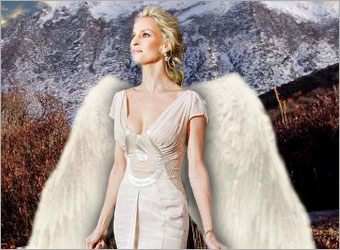步驟 6、在人物層下方創建新圖層,將前景色設為白色,導入天使翅膀筆刷webjx.com,繪制如下效果。