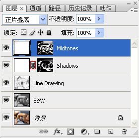 5、復(fù)制“shadows”層,并將所復(fù)制層命名為“midtones”。