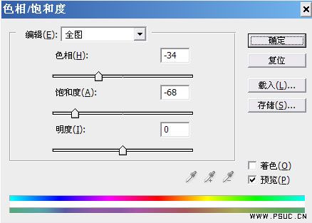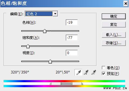 4、再創建色相/飽和度調整圖層,參數設置如下圖: