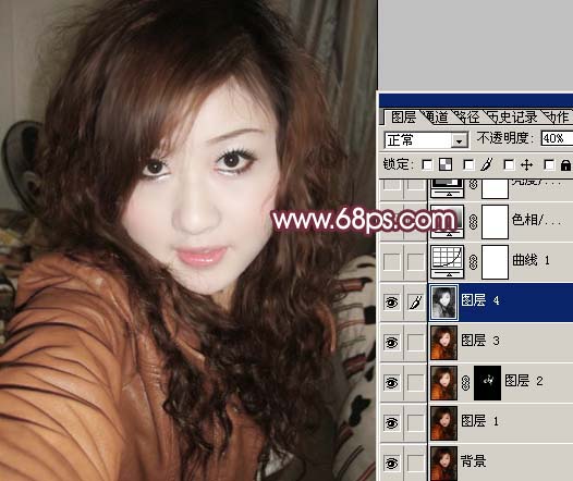 3、點通道面板,點紅色通道,按ctrl + a全選,按ctrl + c復制,回到圖層面板,新建一個圖層,按ctrl + v粘貼,然后把圖層不透明度改為:40%,效果如圖3。