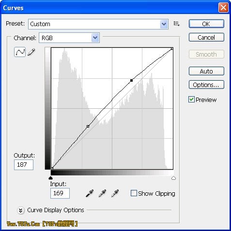 4.按ctrl+m調整曲線,提高圖層1的大體亮度。