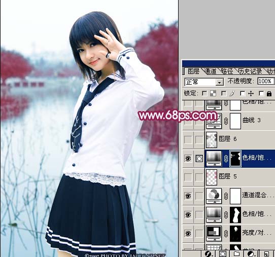 人物調色的時如果整體調色的時候,畫面顏色非常好看,不過人物部分或部分細節出現失真。這時需要用圖層蒙版來修整失真部分,讓畫面更完美。