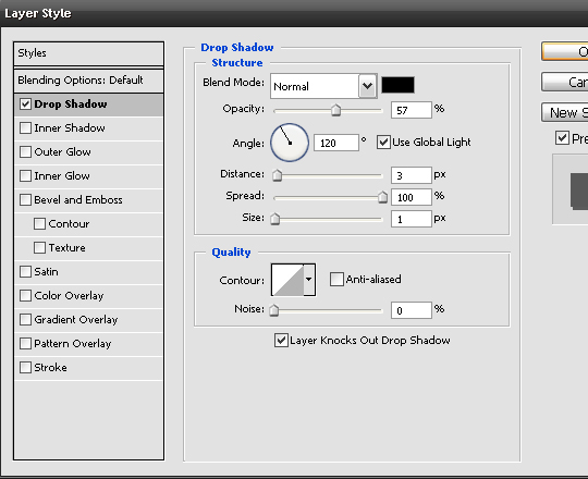 現(xiàn)在我們要給這個導(dǎo)航框添加陰影。選擇layer > layer style > drop shadow,然后使用如下設(shè)置: