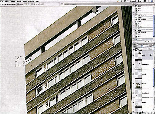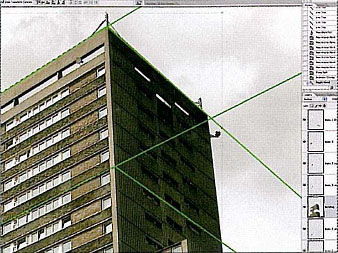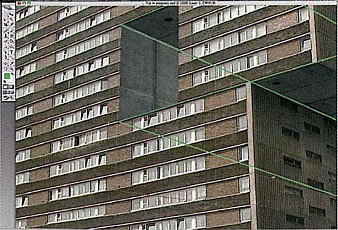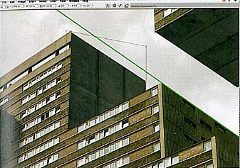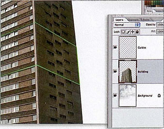 4.開始準備切割,備齊輔助線,將大樓扣出來。
