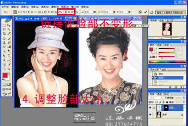4、執行ctrl+t,點一下屬性欄的鏈接圖標,然后給臉形調整大小合適。