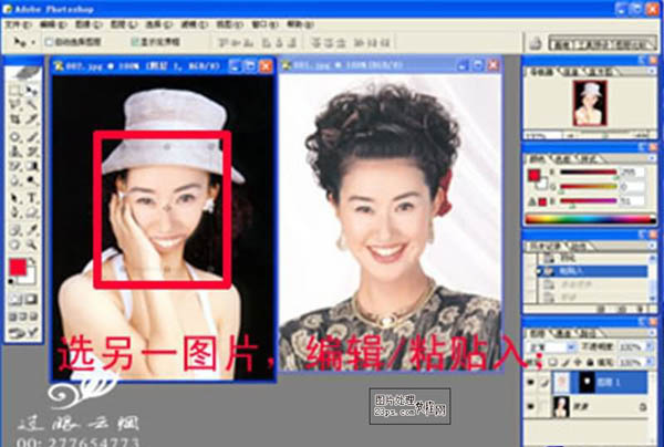 3、選擇回原圖文件,執行編輯—貼入,將復制過來的臉形貼到我們先前建立的選區內。