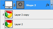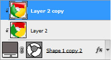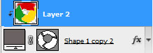 把帶有斜面和浮雕效果的圖層復制一份,用轉換點工具改變一下它的形狀位置,去掉圖層樣式(斜面和浮雕),然后把它放在形狀層和陰影層之間