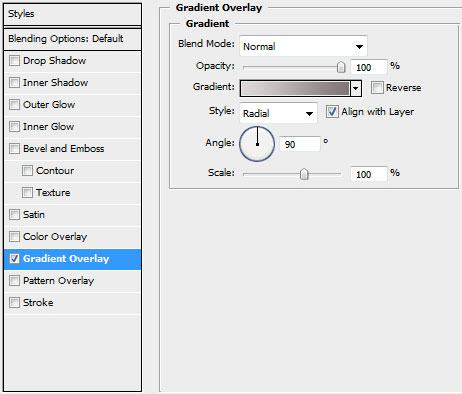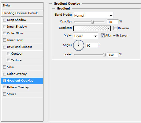 blending options>gradient overlay