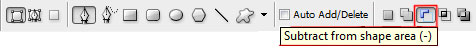 再用橢圓工具重復上一步驟,畫一個同樣的圓邊緣與之前的重合(譯者:或直接復制一層去掉圖層樣式),然后用鋼筆工具(p)在其內部切出我們需要的形狀(譯者:選擇"從形狀區域減去"或按住alt鍵),然后利用轉換點工具進行調整