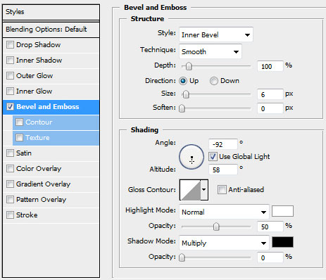 the layer parameters: blending options>bevel and emboss