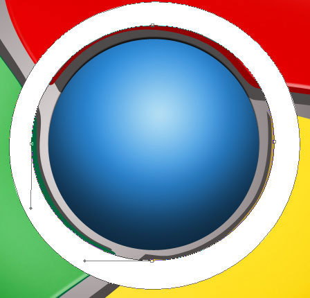 接下來試著在圖標中心位置畫上環狀的高光,使用開始時的方法,用橢圓工具(u)畫上圓形路徑,然后按住alt鍵進行切割(如圖)