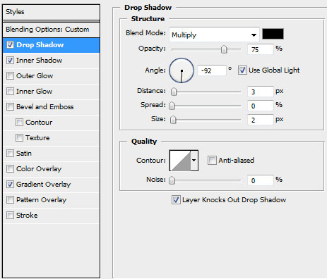 blending options>drop shadow