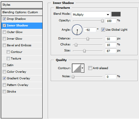 blending options>inner shadow