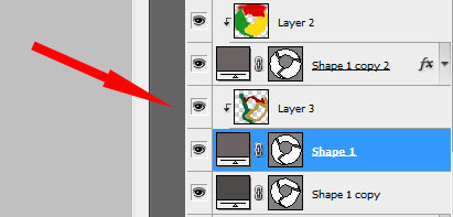 create a new layer again situating it above the previous made one and do the same operations we did when painting the top layer (meaning the layer situated above the shadow layer, but lower than the logotype one).