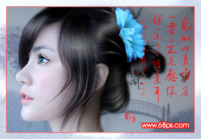 9、到這一步基本完成,新建一個圖層蓋印圖層,適當的銳化一下,再加上裝飾文字,完成最終效果。