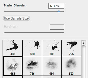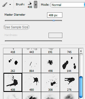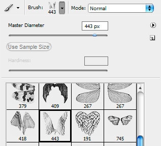 3.現(xiàn)在要添加一些筆刷效果在背景上。我們下載這個筆刷broken_dreams,選中畫筆工具,載入筆刷后選中如圖的筆刷(443px)