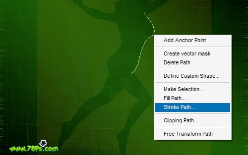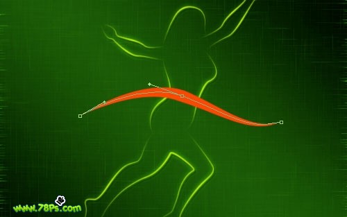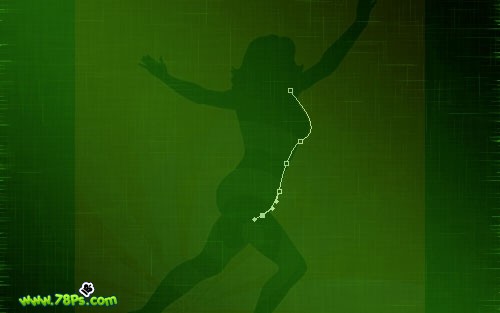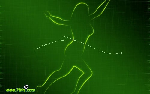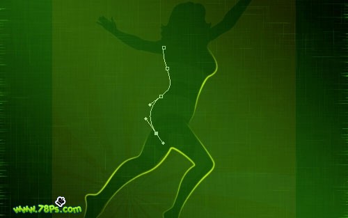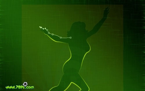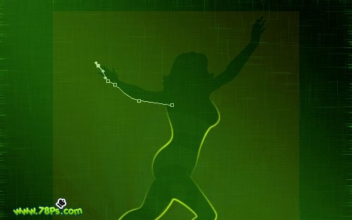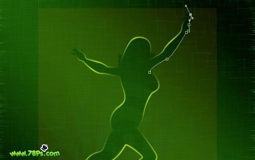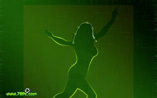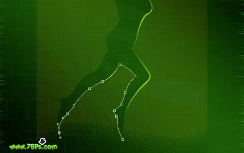 設(shè)置前景色為#c0ff00,選擇鋼筆工具(您需要確認(rèn)是路徑而不是形狀圖層),在圖上畫出如圖的輪廓路徑
