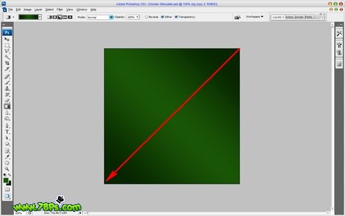 1.按ctrl+n新建一個500*500px的文檔,填充一個漸變顏色,選擇漸變工具從右上角到左下角拉一個線性漸變