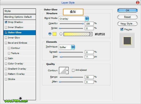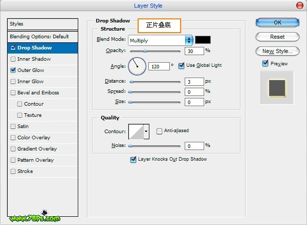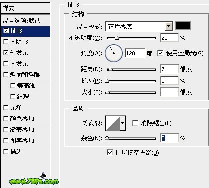 4.下面我們要為輪廓線條添加樣式:選中輪廓線條的圖層執(zhí)行圖層--圖層樣式--投影、外發(fā)光