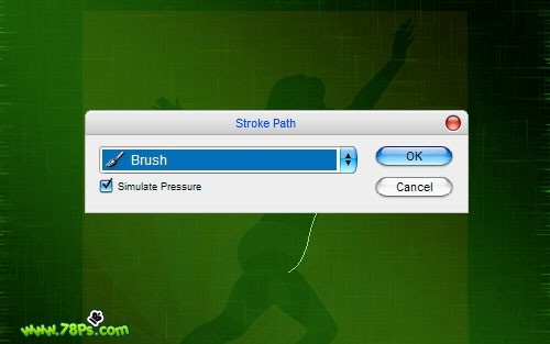 新建一個圖層,然后在畫布上按鼠標(biāo)右鍵選擇描邊路徑(畫筆、模擬壓力)