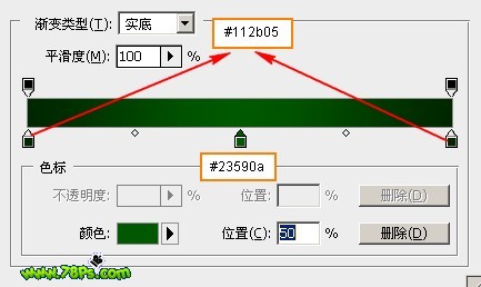 漸變顏色為#112b05,#23590a(位置:50%),#112b05