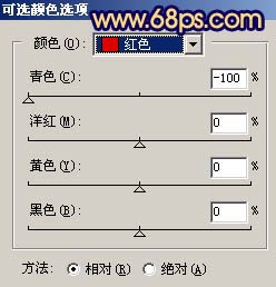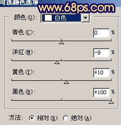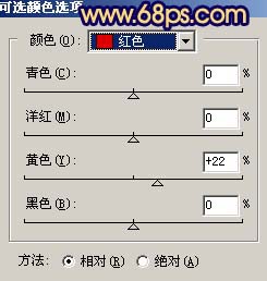 12、創建可選顏色調整圖層,參數設置如圖19,效果如圖20。