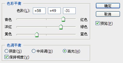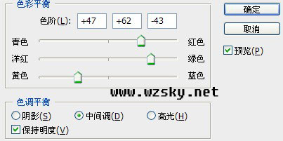3、最后用色彩平衡加強對比度,參數設置如下圖。確定后得到最終效果!