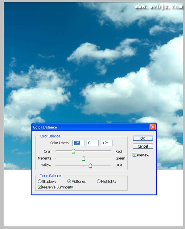 打開(kāi)素材圖片后,調(diào)整色彩平衡: