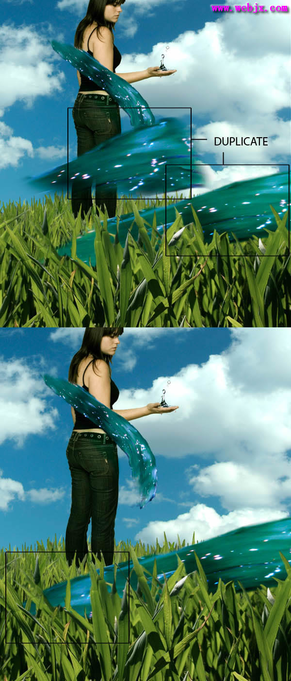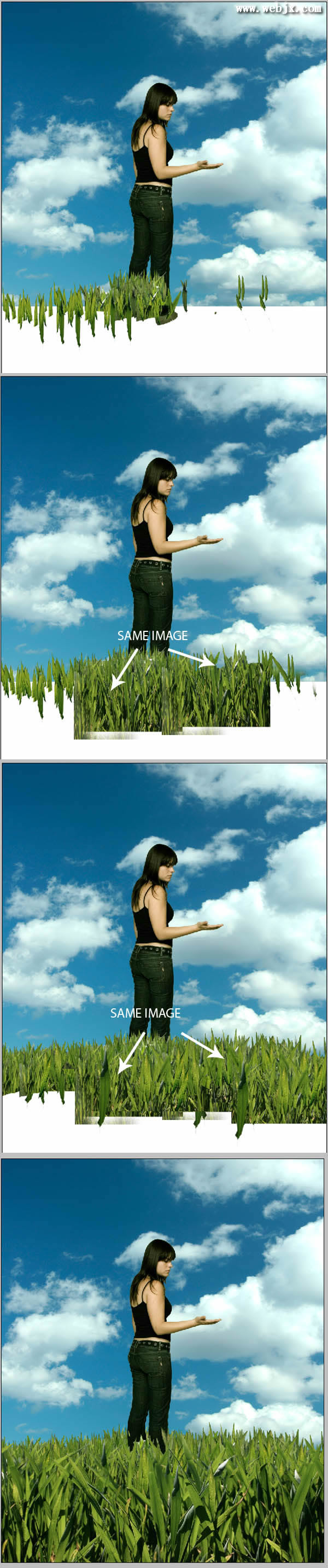 我們剪切一些草的圖片,放在女孩的腳的下面,使用線的基層背后的女孩加入更好地在草坪上。 最后,使用小葉片,以支付細(xì)節(jié)和不完善在草坪上。重要的是,你不合并所有層,因?yàn)槲覀冃枰M(jìn)要素之間的一些人。這是一項(xiàng)容易的工作,它不需要太多的知識(shí),但您將需要耐心和良好的圖片。最后一個(gè)建議是不要用刷子,使單元這樣,除非你是絕對(duì)的專家,因?yàn)樗雌饋?lái)不錯(cuò),沒(méi)有真實(shí)感。