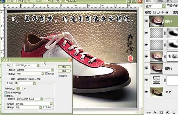 5、新建一個圖層,蓋印圖層,執行:圖像 > 應用圖像,參數設置如下圖。 |