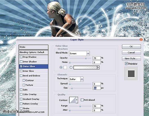 9、給花飾添加外發光。具體參數如下圖所示: |