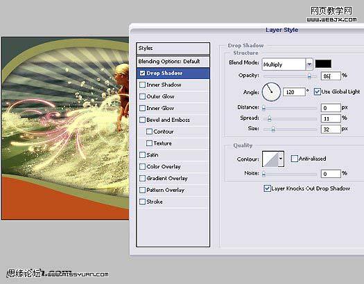 14、設置模糊圖層樣式為疊加,這將使圖片光亮而且有自然發光的對比度。下圖是目前制作所達到的效果。 |