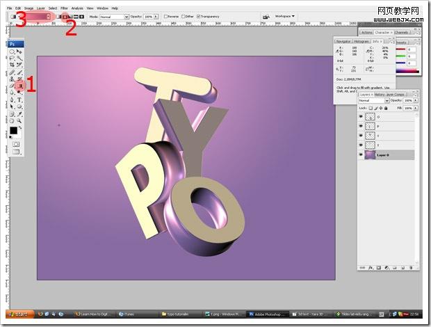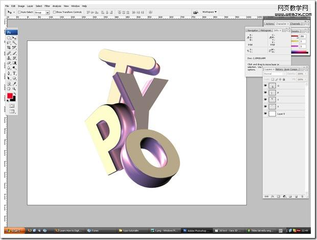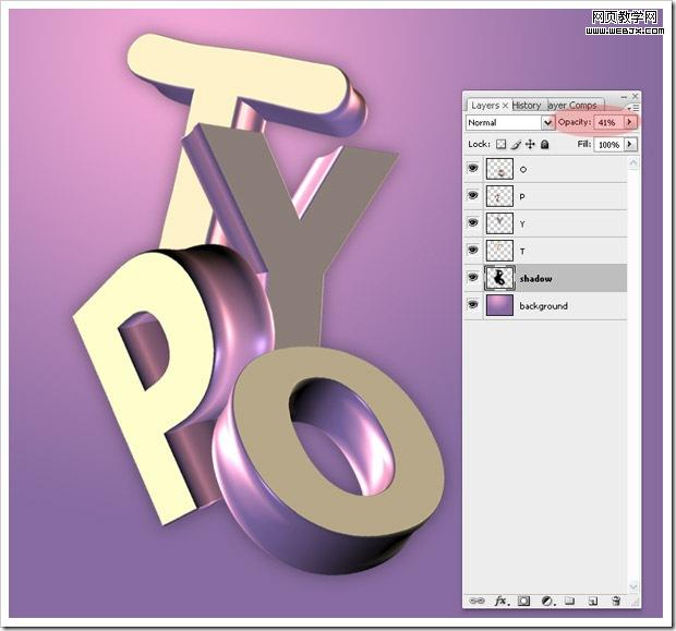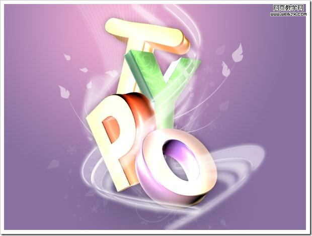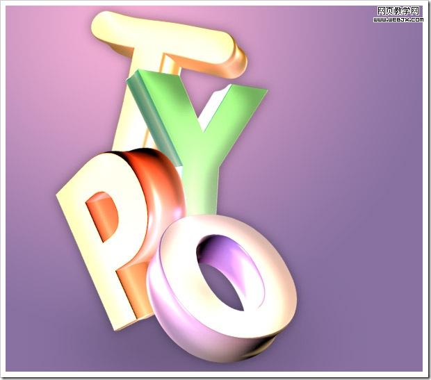 像這樣做完每一個(gè)字母,改變3d的效果,直到你滿意為止。我最后得到了4個(gè)png文件,它們分別是–t,y,p,e.
