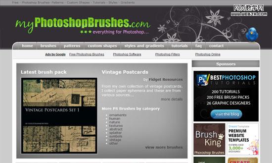 myphotoshopbrushes.com提供了許多富有分享精神的設計者和藝術家們的優秀作品。除了大量筆刷外,該站還提供其它photoshop資源,例如photoshop樣式和自定義形狀等。