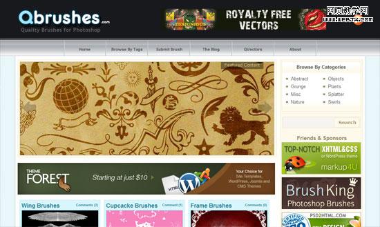 qbrushes.com收藏了不同天才設計者的高質量筆刷。這個網站很許多易于查找的功能,方便你下載需要的筆刷類型。例如,你可以使用按標簽瀏覽或者使用abstract和grunge等目錄來瀏覽等。